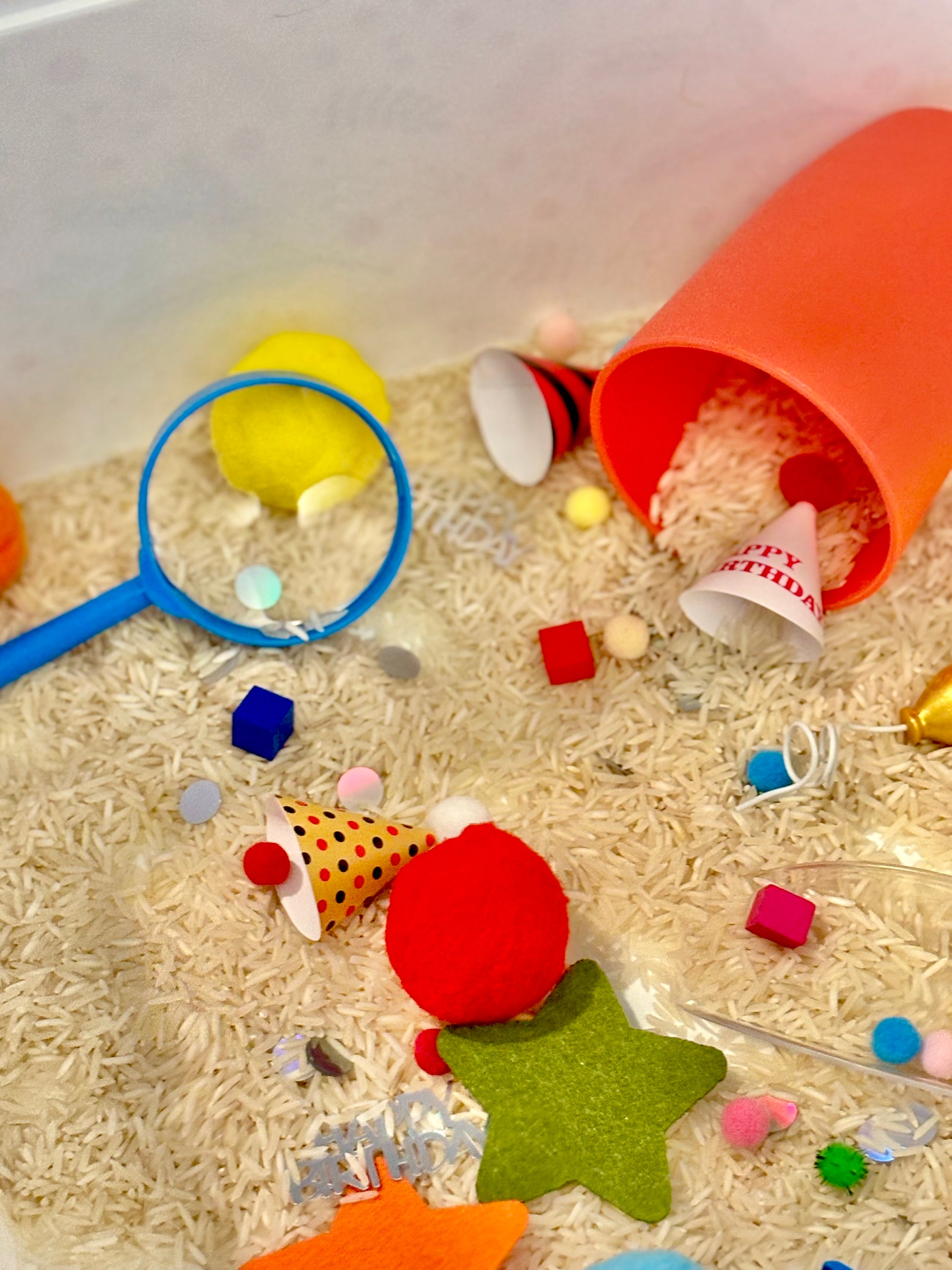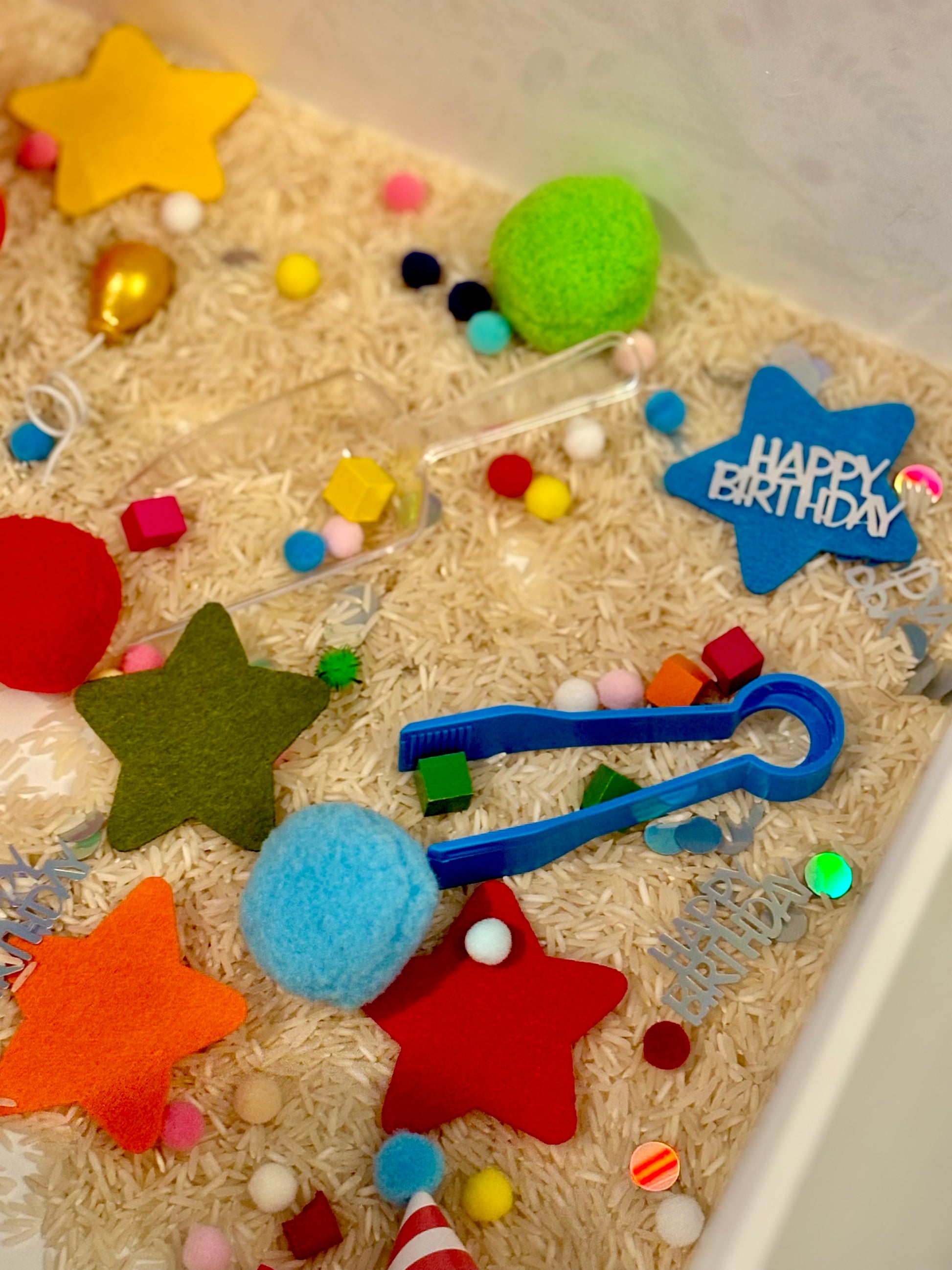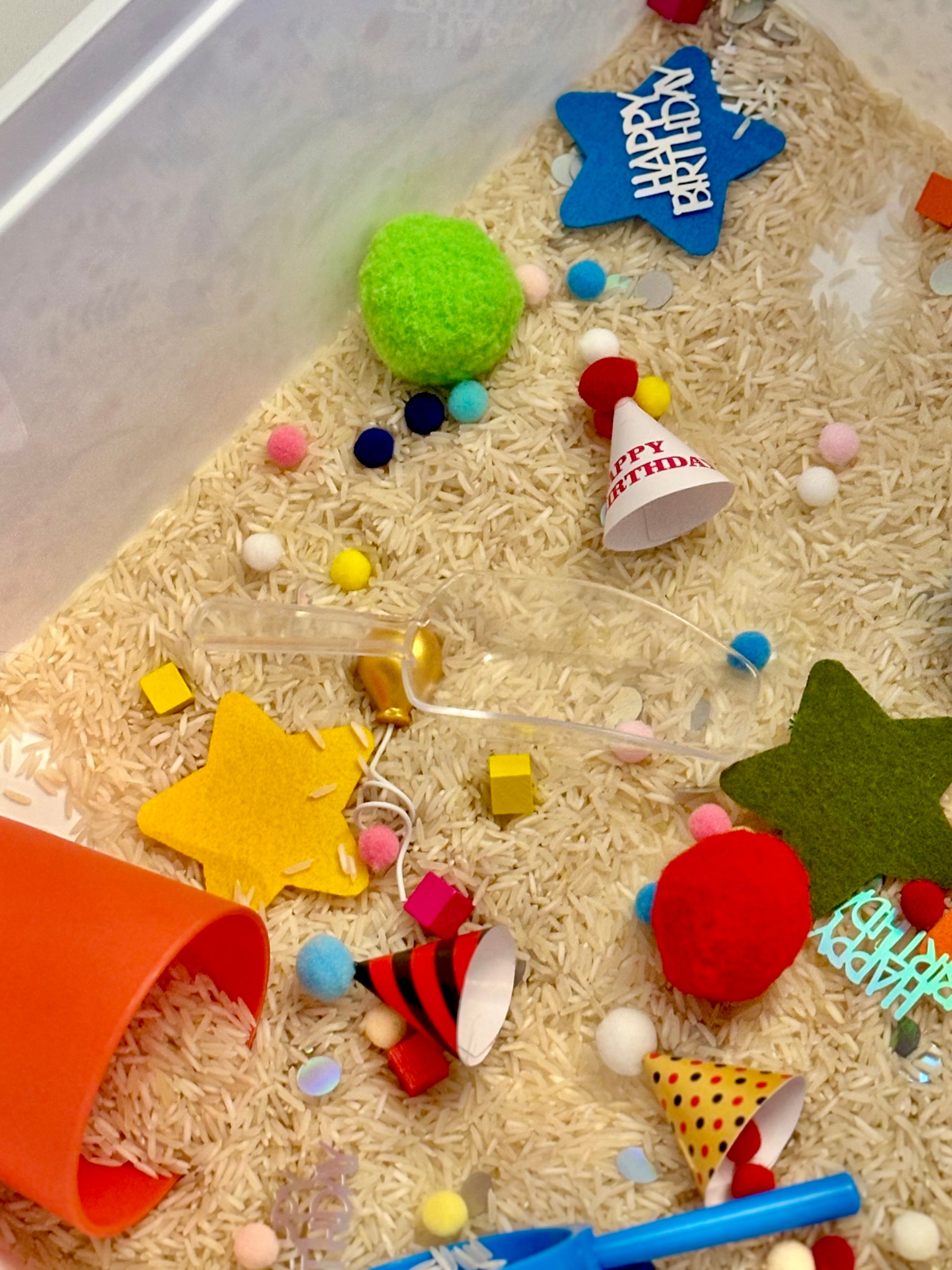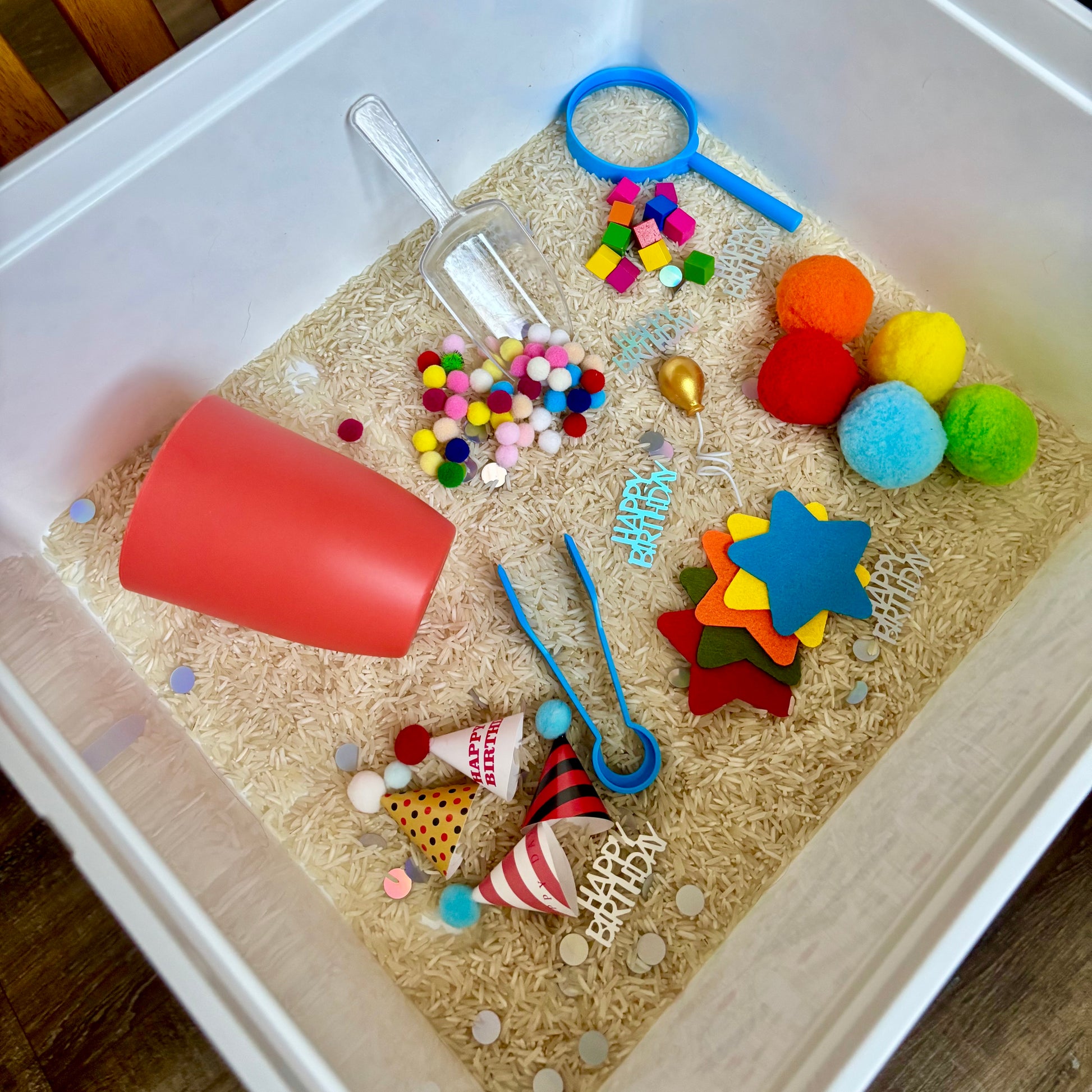 - a generous scoop of small pom poms and Happy Birthday confetti